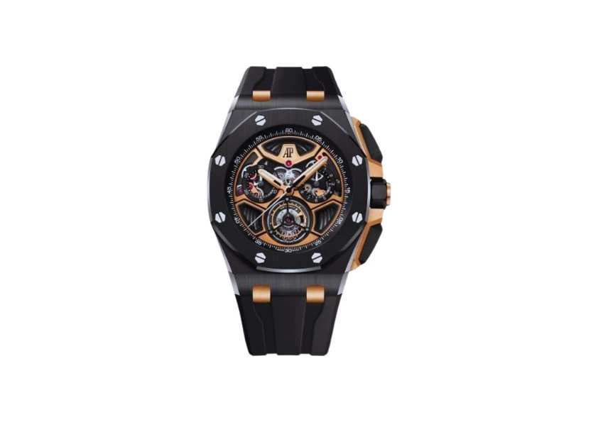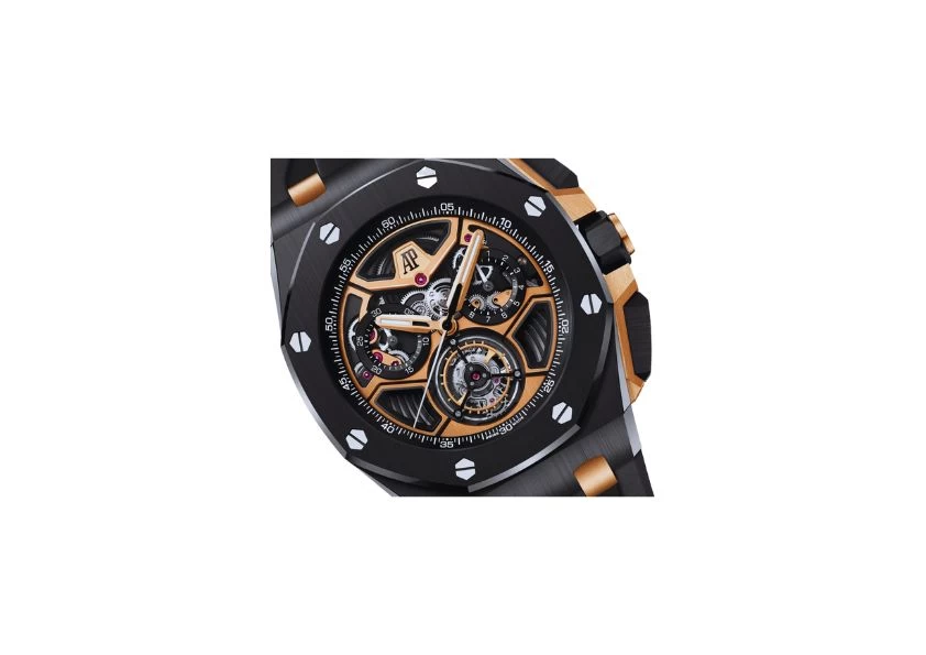 DescriptionIntroducing the Audemars Piguet Royal Oak Offshore Tourbillon Chronograph 43mm Ceramic/Pink Rose Gold 26622CE.OO.D002CA.02 - BRAND NEW. This exquisite timepiece is the epitome of luxury and sophistication, designed for the modern gentleman who appreciates the finer things in life. Crafted with meticulous attention to detail, this watch features a stunning ceramic case, bezel, pushpieces, and crown, complemented by 18-carat pink gold links and pushpiece guards. The combination of these premium materials creates a striking contrast that is sure to turn heads. Equipped with an automatic movement, this timepiece ensures precise and accurate timekeeping, while the transparent case back allows you to admire the intricate inner workings of the watch. The glareproofed sapphire crystal adds a touch of elegance and protects the dial from scratches and reflections. Speaking of the dial, it boasts a sleek black color with openworked dial markers, adding a touch of contemporary flair to the overall design. The analog display further enhances the classic appeal of this timepiece, making it a timeless addition to any collection. The bracelet is made from high-quality rubber, providing both comfort and durability. The AP folding clasp ensures a secure and comfortable fit, making it perfect for everyday wear or special occasions. As a testament to its exceptional craftsmanship, this watch is manufactured in Switzerland, the renowned hub of watchmaking excellence. It is also equipped with impressive complications, including a tourbillon and chronograph, showcasing the brand's commitment to innovation and precision. With a water resistance of 100 meters (330 feet), this watch is suitable for various water activities, making it a versatile companion for any adventure. |