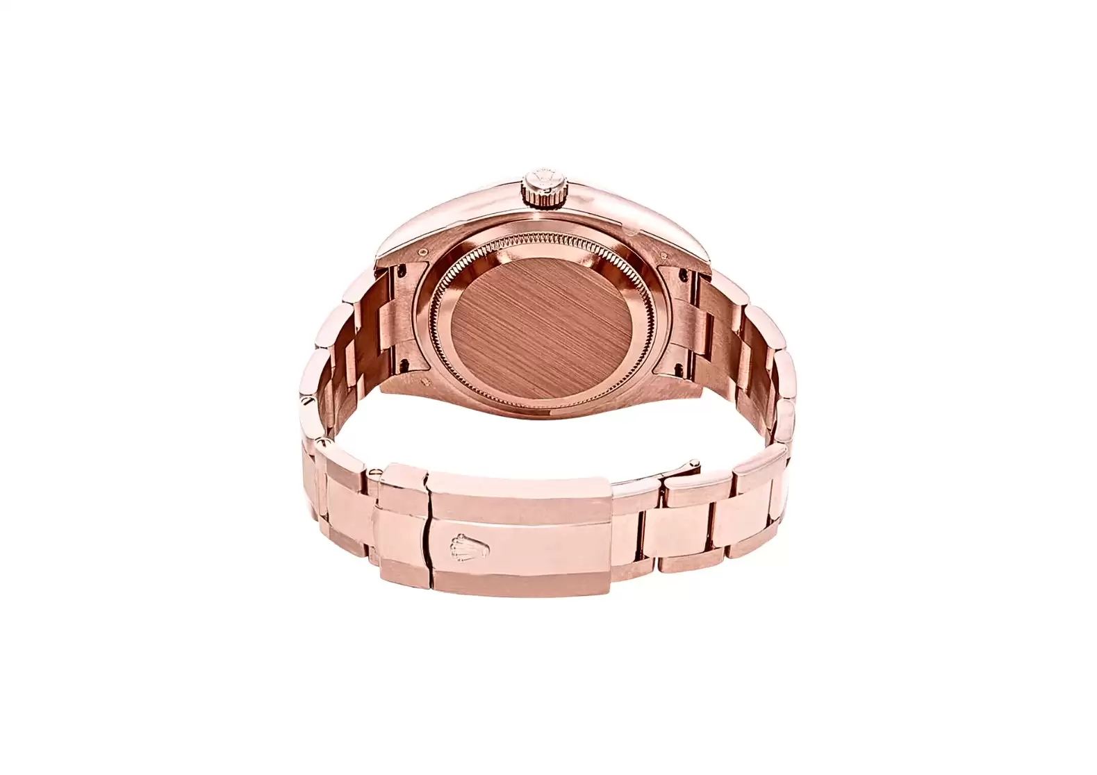 The solid 18k Everose gold case and bracelet exude elegance and durability. The scratch-resistant sapphire crystal protects the dial, while the watch itself is water-resistant up to 100 meters or 330 feet, making it suitable for everyday wear and occasional water activities.