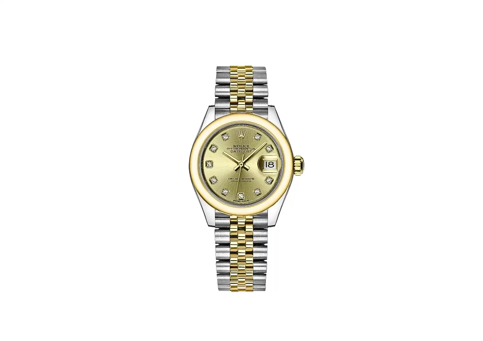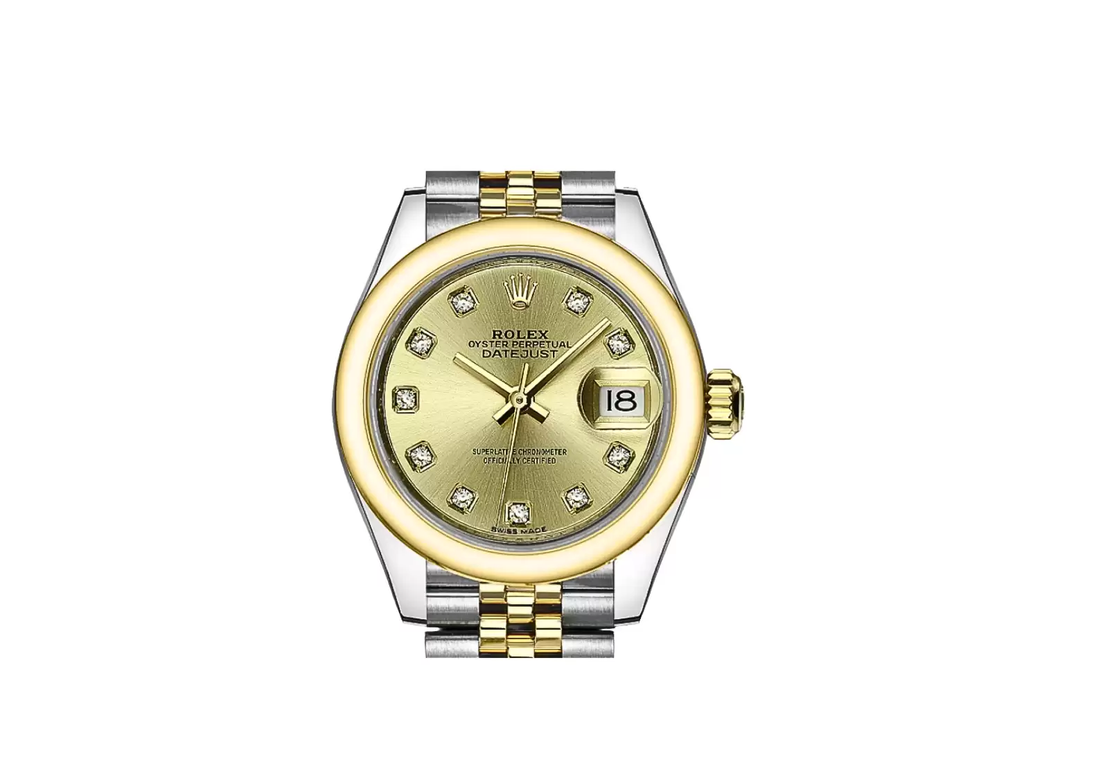 Introducing the Pre-owned Rolex Lady-Datejust 28 Champagne Diamond Dial Women's Watch 279163-0011. This exquisite timepiece is a true symbol of luxury and elegance.